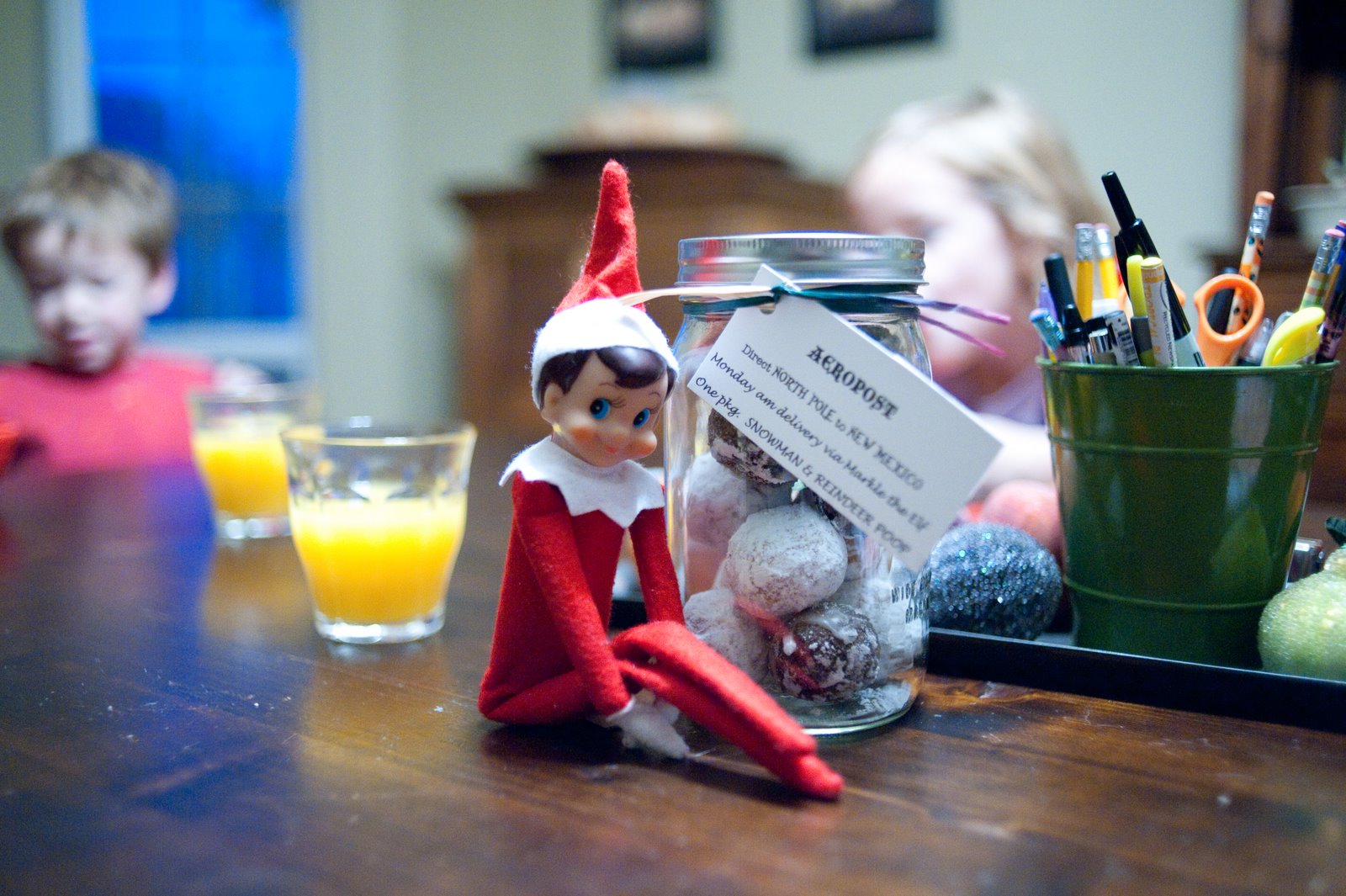 Ella even wrote him a note asking him a lot of questions about Santa & whether reindeer & snowmen really poop donut holes. The pesky elf has yet to respond.